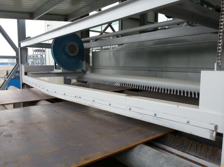 常規(guī)鋼板預(yù)處理線拋丸清理機(jī)包含:鋼板預(yù)處理線、型材拋丸機(jī)、噴漆烘干設(shè)備等幾部分組成,采用輥道輸送,根據(jù)鋼板寬幅定制拋丸器排布,其中我公司在拋丸設(shè)備的開(kāi)發(fā)過(guò)程中總結(jié)了國(guó)內(nèi)國(guó)家設(shè)備用戶使用情況,針對(duì)鋼丸的回收部分,特別加裝刮板及滾掃,鋼丸回收率高,損耗低。